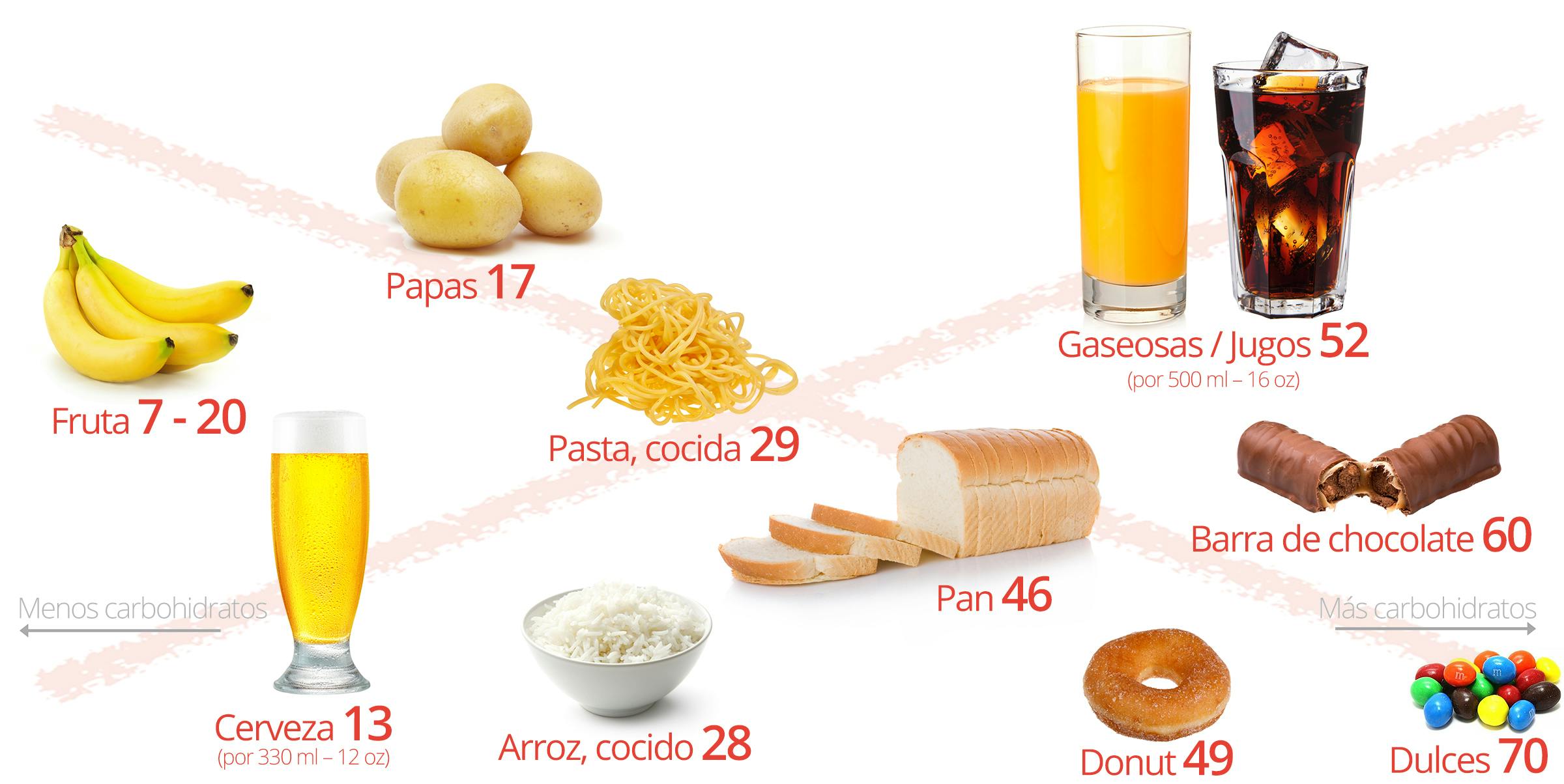 Esto es lo que no deberías comer al seguir una dieta baja en carbohidratos: alimentos repletos de azúcar y almidón. Como puedes ver, estos alimentos tienen muchos más carbohidratos.