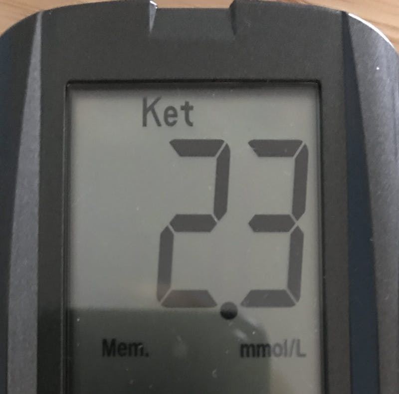 Oh yeah, ketosis and 0.4 mmol/L more ketones than yesterday! Good news, but it was early days.