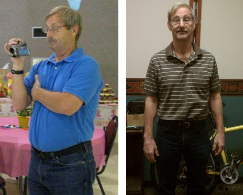 My story starts out about 40 years ago. I was in my early twenties when I developed a double hernia. At the time I was at a normal weight for me. I am 5’8” (173 cm) and weighed around 160 lbs (72 kg) with a body fat of probably 7–10%. I had surgery to correct my hernia and couldn’t work for 6 weeks after the surgery, and I gained 25 pounds (11 kg), all fat. After this I always had trouble getting and keeping my weight off.