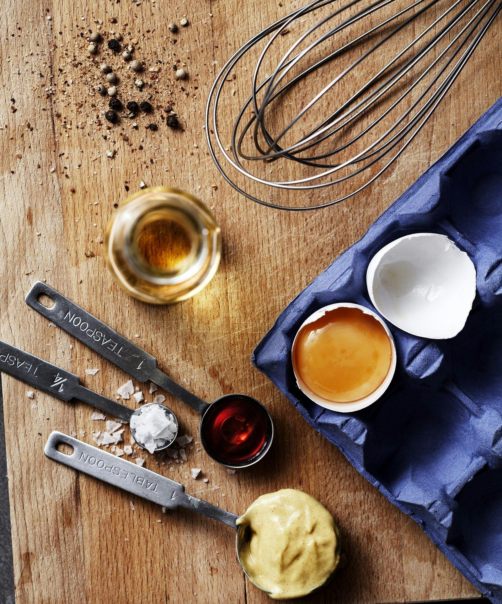 Egen majonnäs är garanterat tillsatsfri, billig och slår all fabriksmajonnäs med hästlängder. Dessutom är den hållbar, minst 5 dygn i kylen. Ingredienserna – ägg, senap och en bra neutral olja – har du säkert redan hemma.