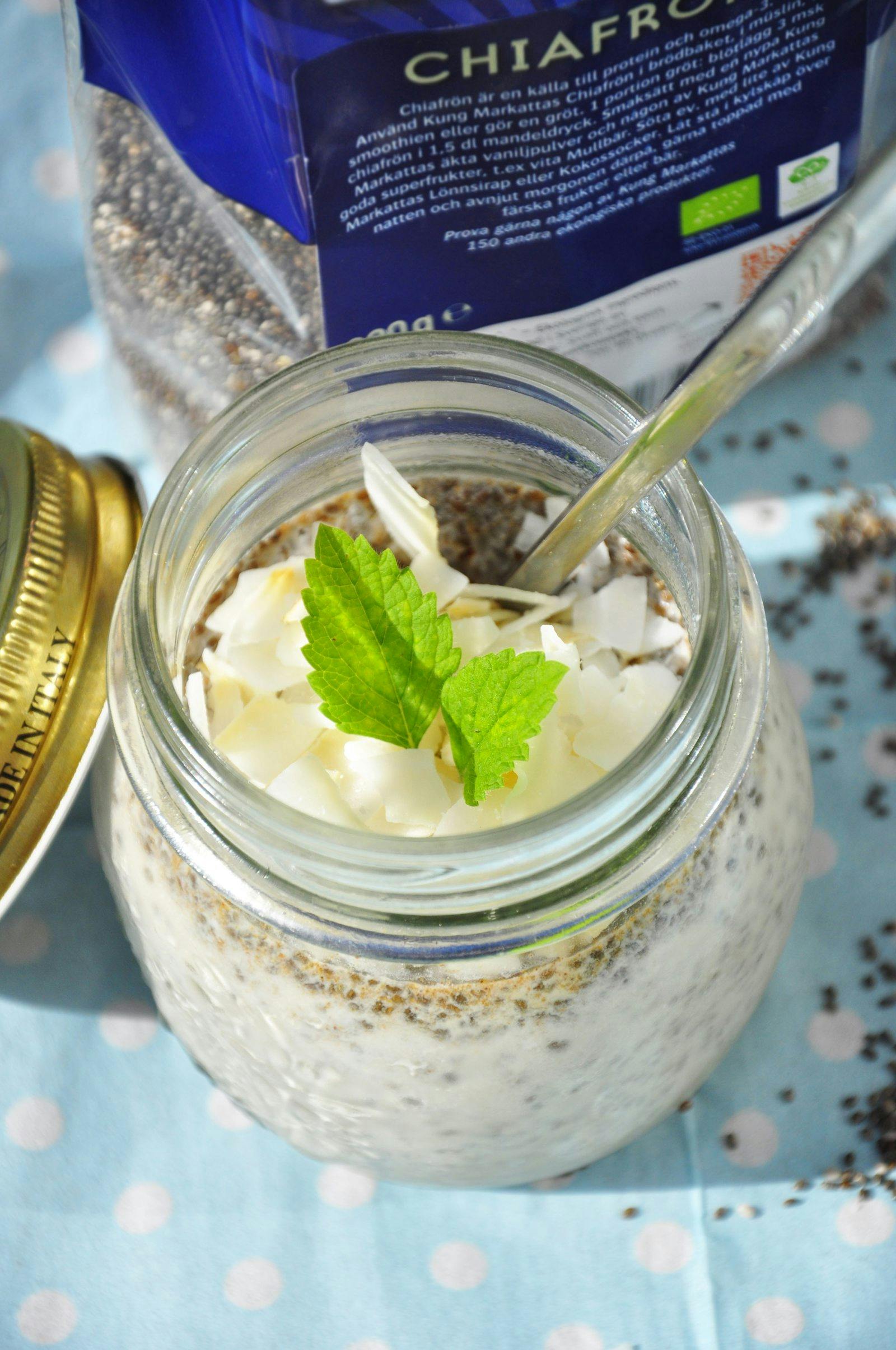 En nyttig och mättande frukost eller mellanmål som du med fördel blandar ihop dagen innan. Chiafrön är verkligen trendiga just nu då de är rika på protein, fibrer och omega-3 (ALA). Dock bör man ha i åtanke att fröna egentligen bör krossas om kroppen ska kunna tillgodose sig av alla nyttigheterna. Dess gelbildande egenskaper ger dock en ökad mättnadskänsla men var försiktig om du lider av IBS-mage då de kan orsaka magknip.