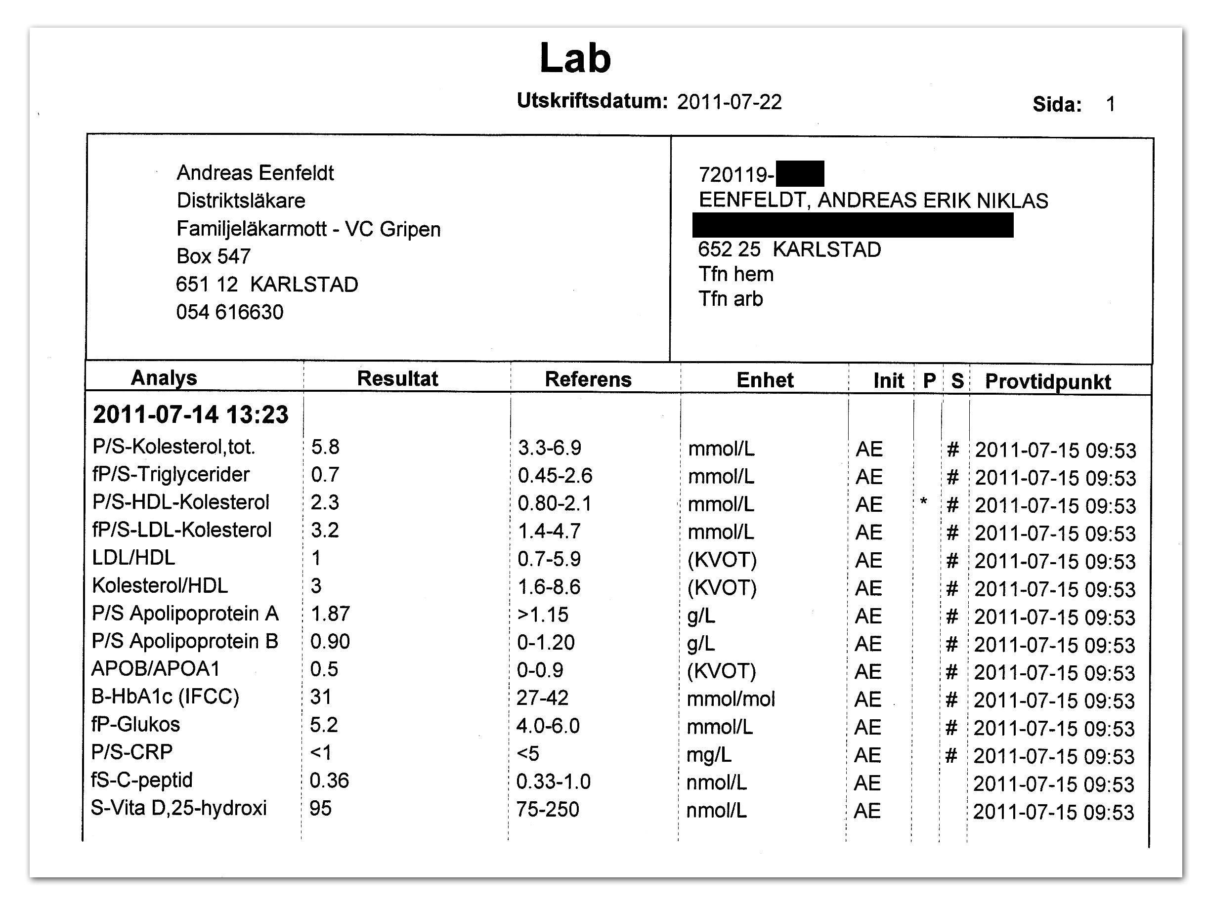 Frågan är hur det har påverkat mitt kolesterol och andra hälsovärden? Jag kontrollerade det just igen. Här är resultaten.