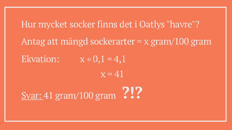 Med risk för att avslöja vilken mattenörd jag är, började jag här räkna ut hur mycket socker det är i den havre ni använder. Jag ställde upp en ekvation: