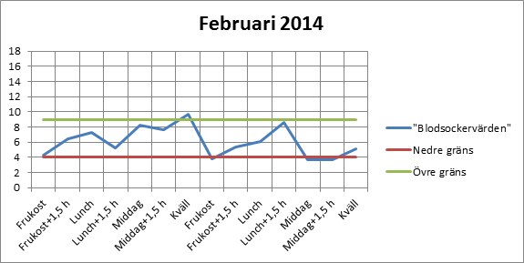 Så här ser mina värden ut under två vanliga dagar i februari 2014.