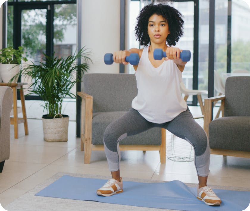 Pro tip: Consider every exercise as an exercise for your stomach, back, and glute muscles (the ones you sit on). If you keep your glutes and lower abdominal muscles engaged for all your exercises, it helps build stability and can decrease the strain on your lower back and other sensitive muscle groups.
