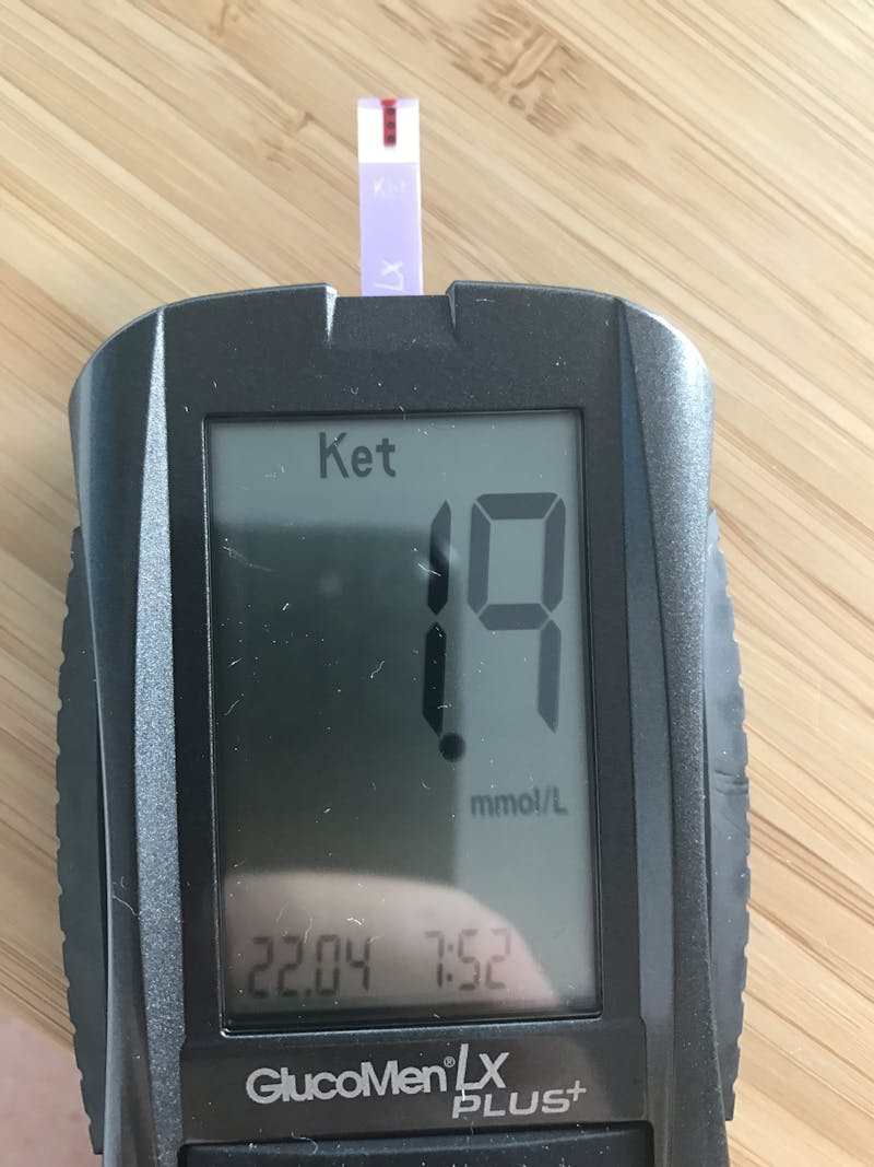 Beeeeep! The screen was blinking – 0.0 mmol/L. Nothing. No ketosis whatsoever.